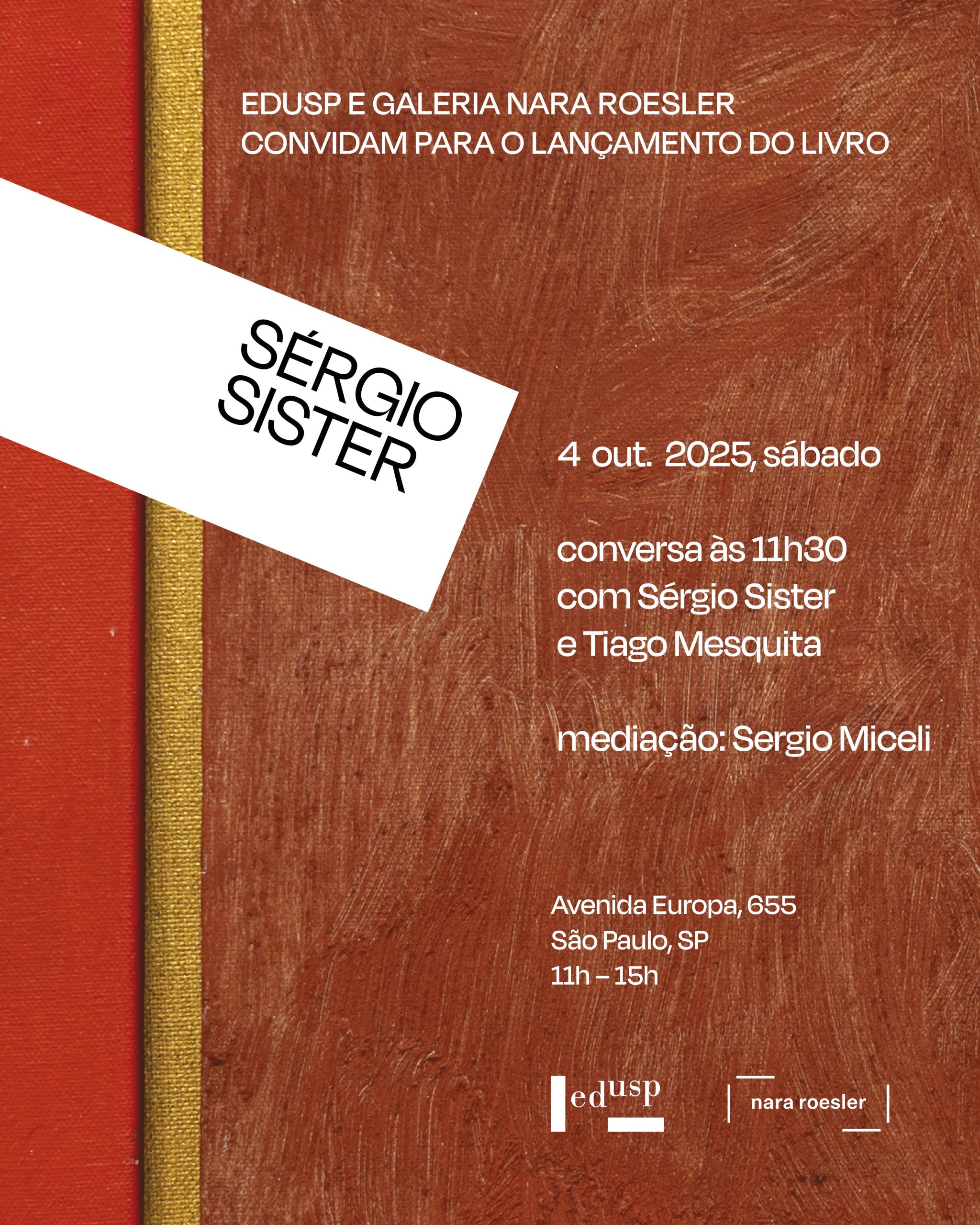 O evento contará com a presença do artista Sérgio Sister, em conversa com o professor e crítico de arte Tiago Mesquita (ECA-USP), mediada por Sergio Miceli.